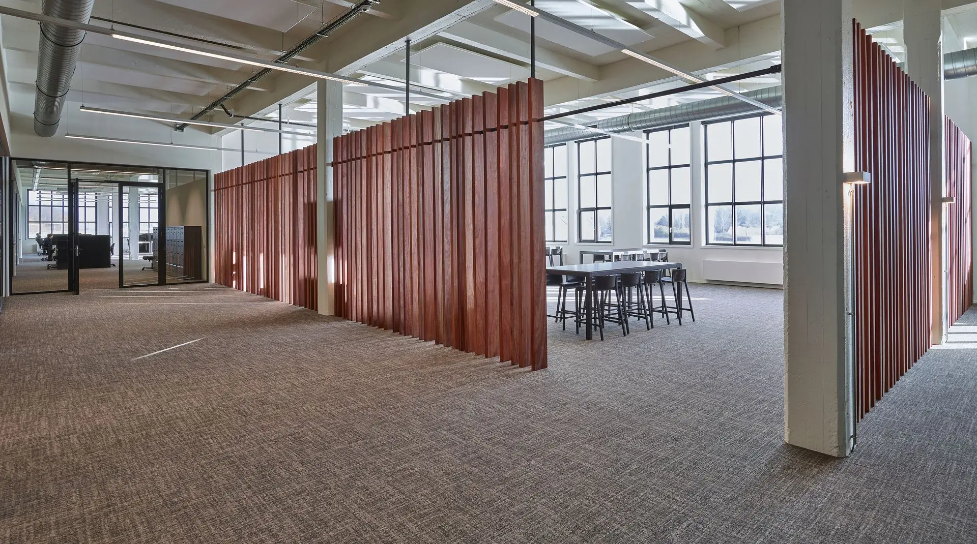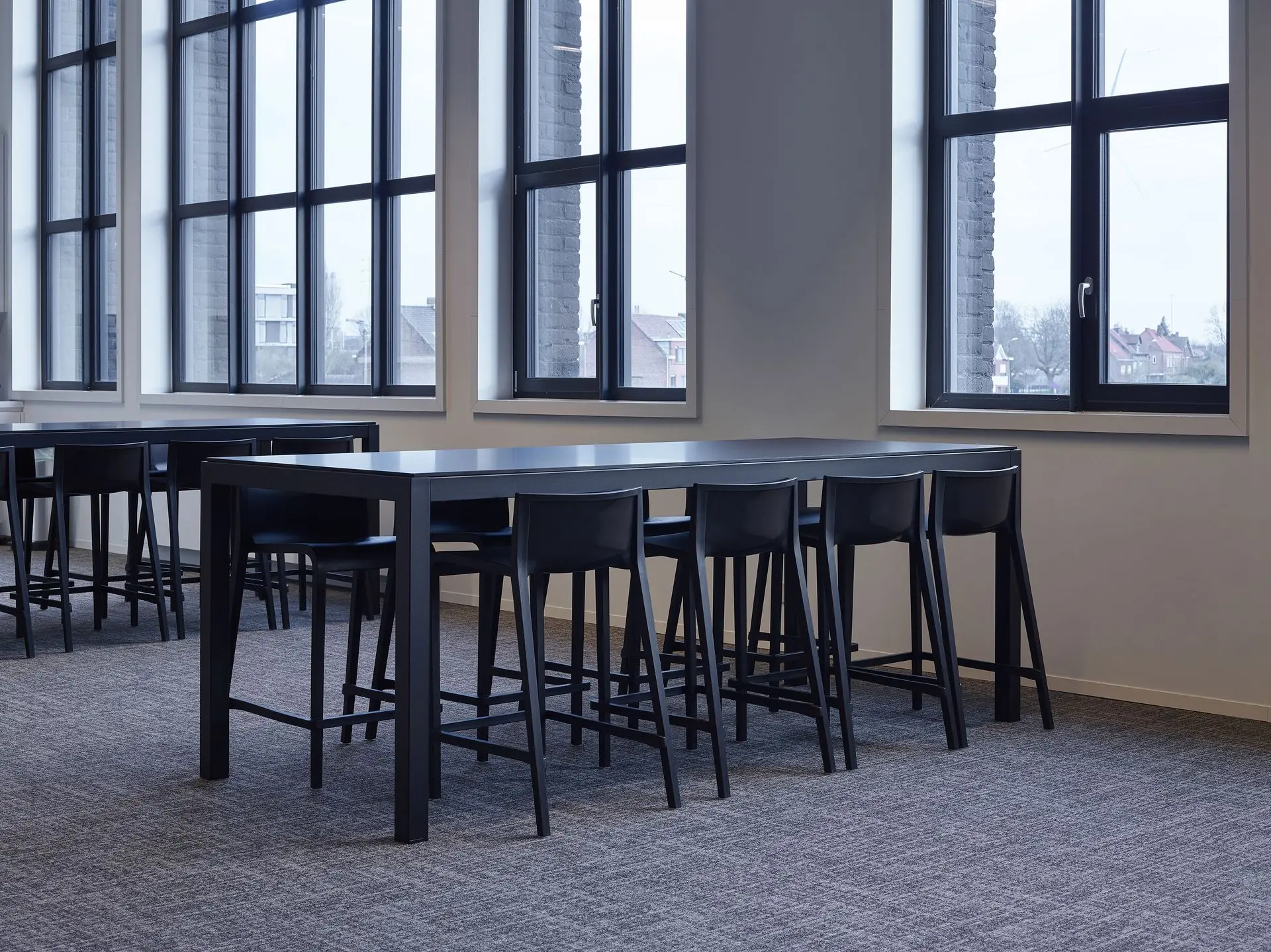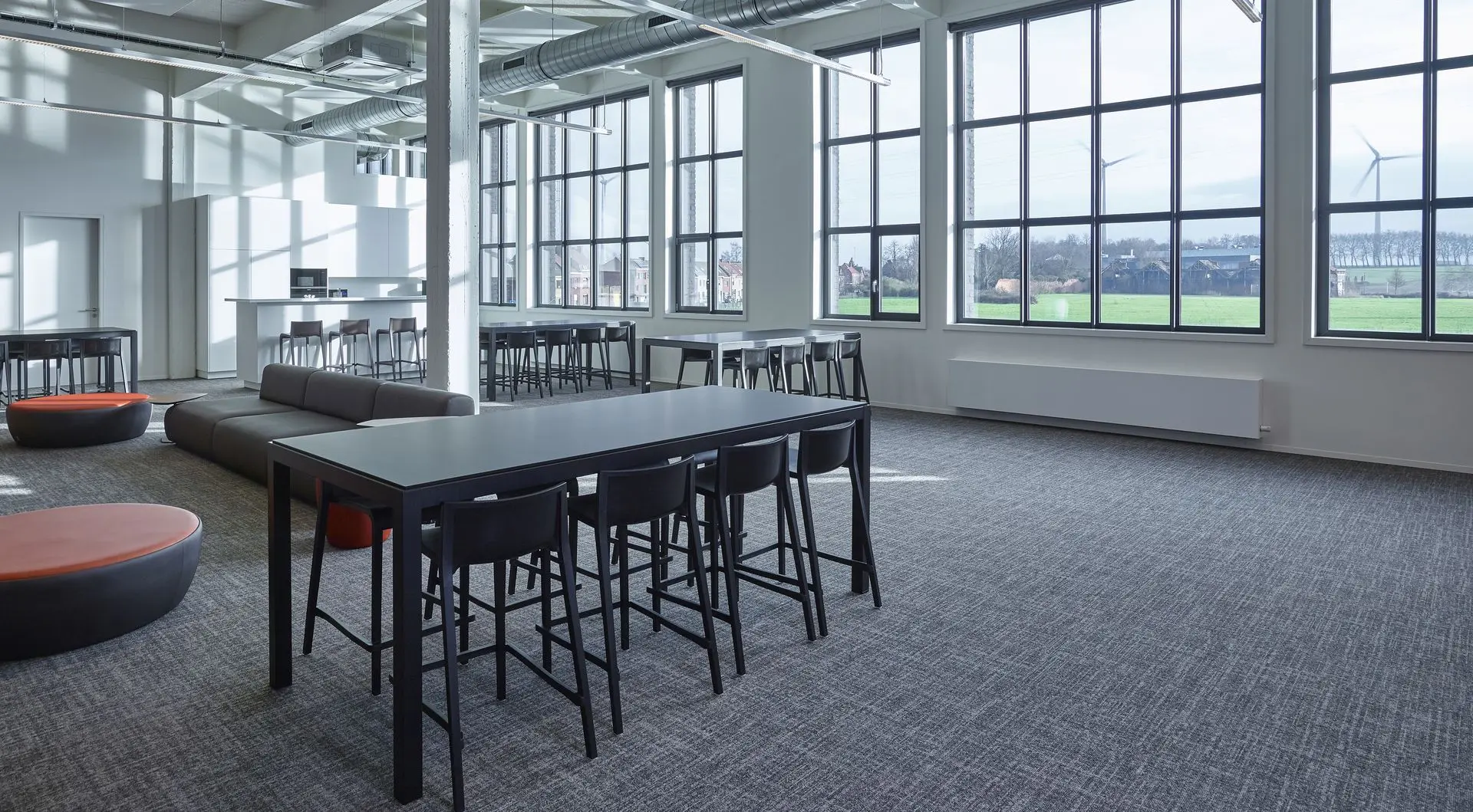 In dit project transformeerde Dieto een ruime, industriële site tot een inspirerende werkomgeving. Grote raampartijen brengen overvloedig daglicht binnen, terwijl de strakke lijnen, donkere tinten en warme houtaccenten zorgen voor balans en rust.
