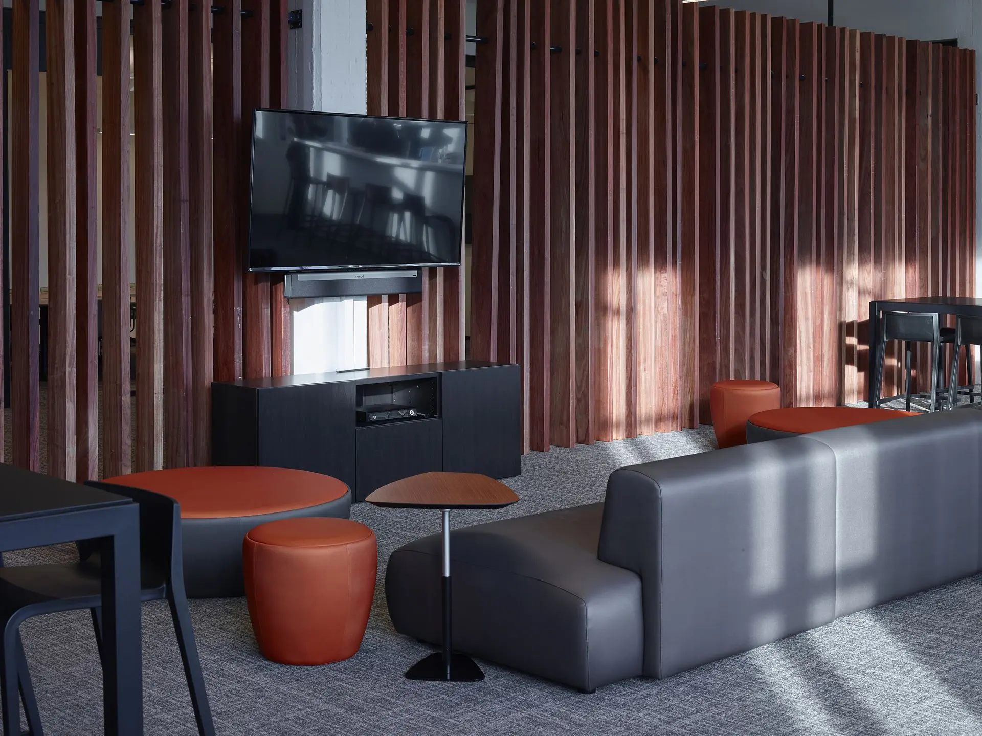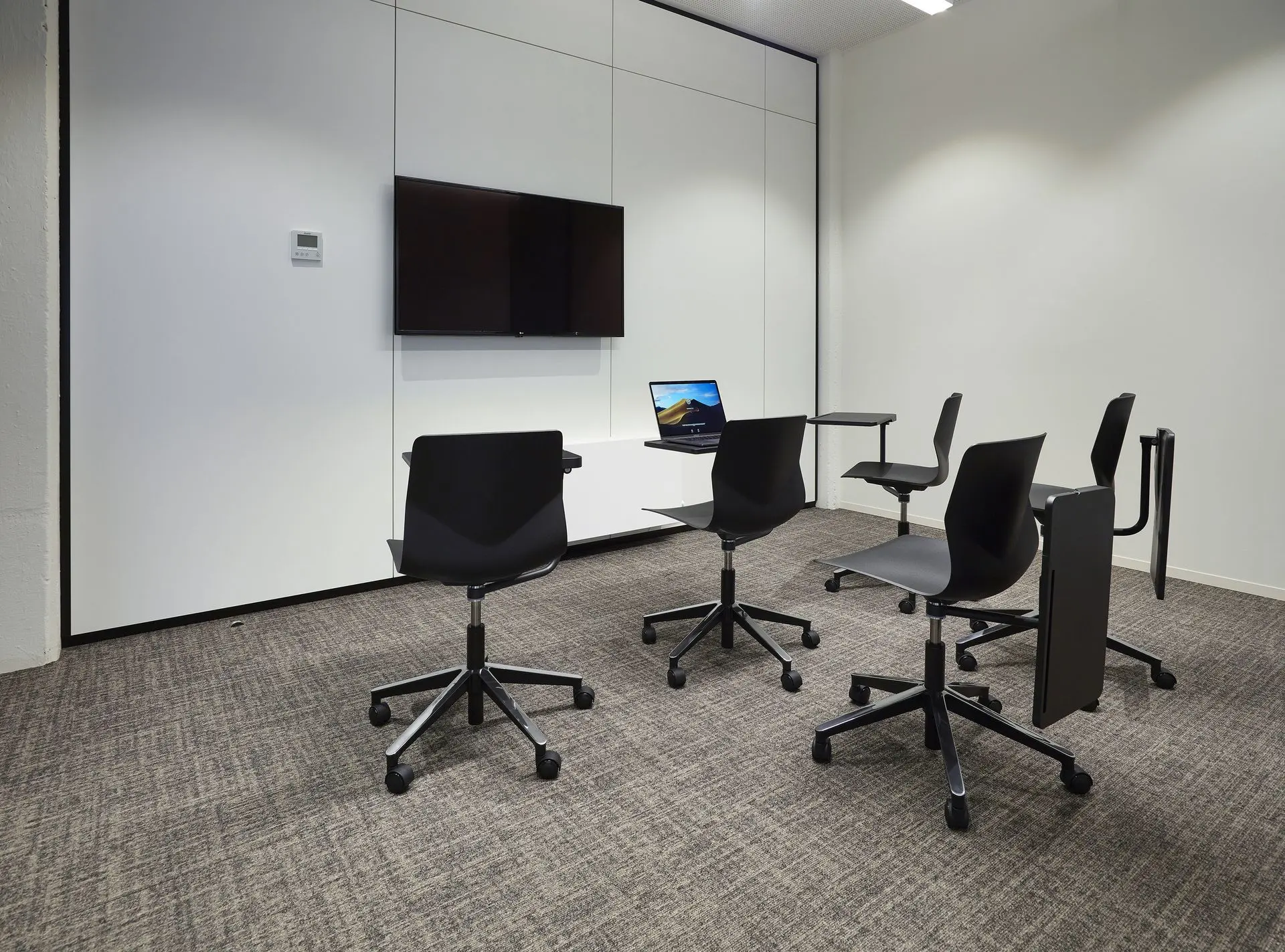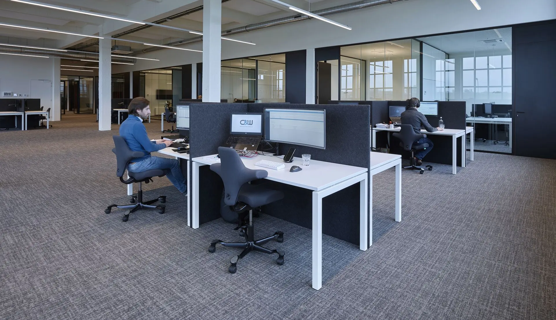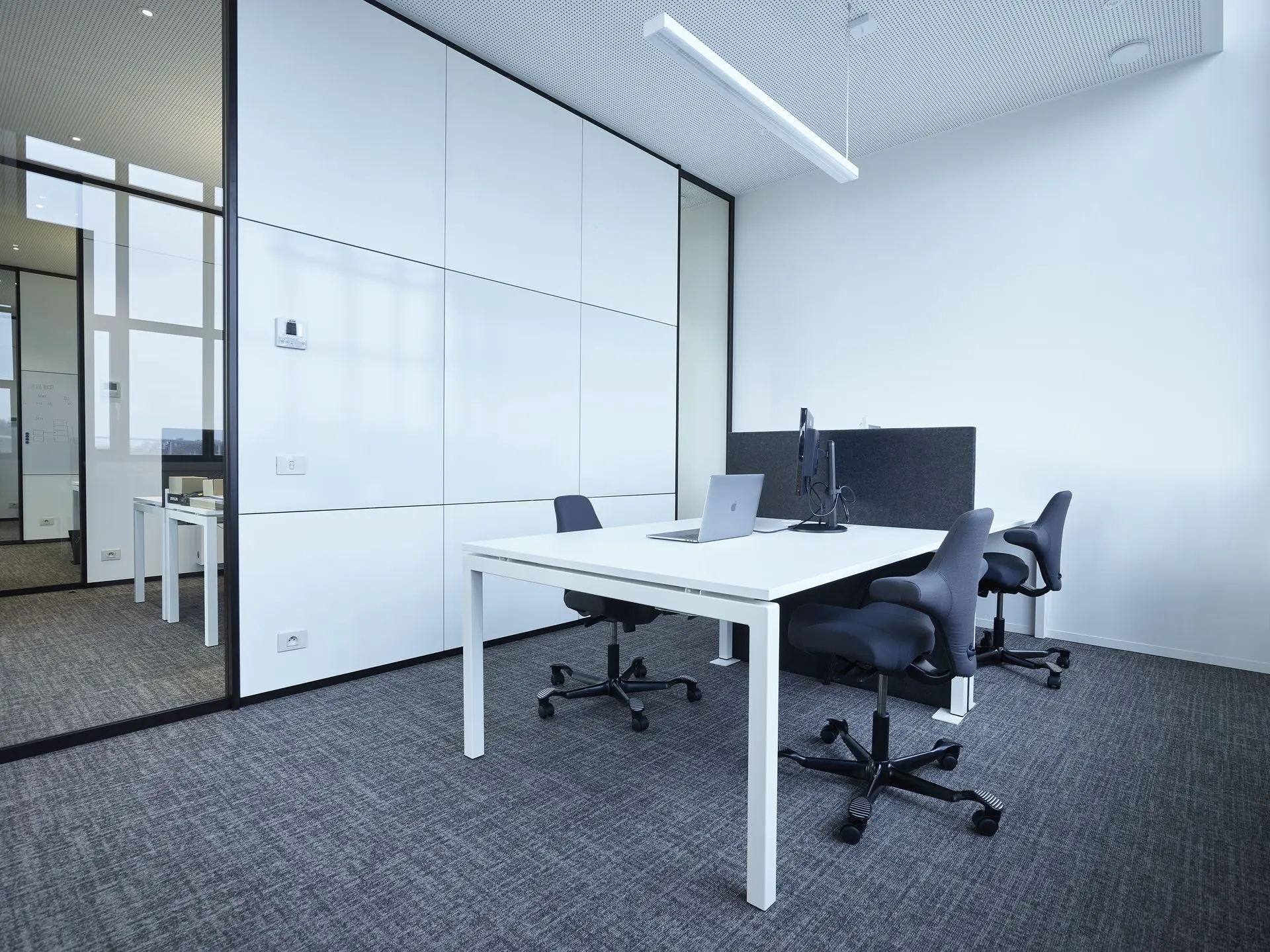 Open werkzones, vergaderruimtes en zithoeken lopen vloeiend in elkaar over, wat samenwerking en informele ontmoetingen stimuleert. Elk meubelstuk is zorgvuldig gekozen voor zijn ergonomie, duurzaamheid en esthetiek.
