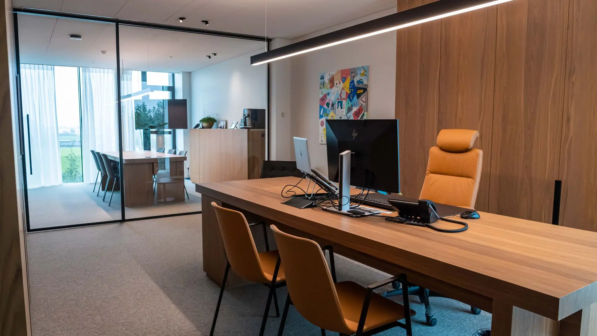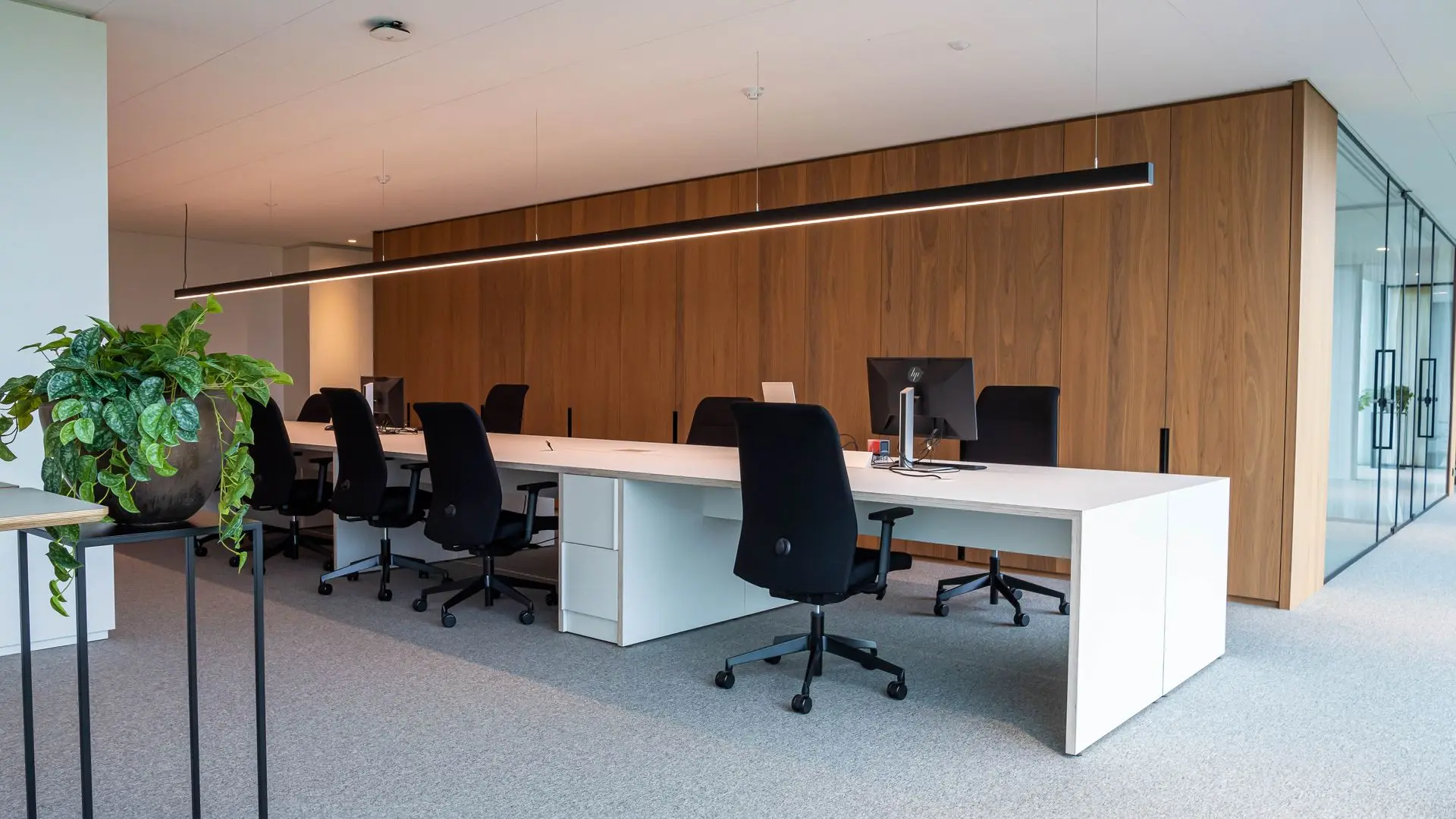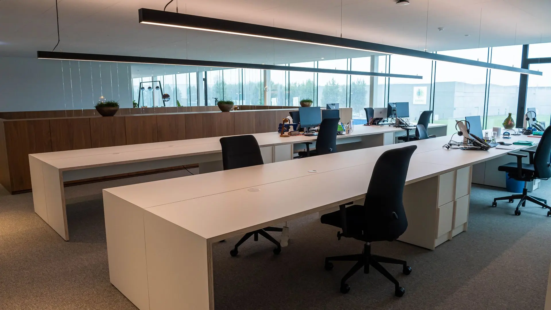 Voor MLS Menen creëerde Dieto een moderne werkomgeving waarin strak design, functionaliteit en warmte perfect in balans zijn. De combinatie van glaswanden, natuurlijke houtstructuren en zorgvuldig gekozen verlichting zorgt voor een open, rustgevende sfeer. Elk meubel, van bureaus tot vergadertafels, werd geselecteerd met oog voor ergonomie en esthetiek. De uitgepuurde afwerking en coherente materialen versterken het gevoel van eenheid doorheen het hele gebouw. Het resultaat is een stijlvolle, tijdloze werkomgeving die professionaliteit uitstraalt en tegelijk aangenaam aanvoelt voor medewerkers en bezoekers.