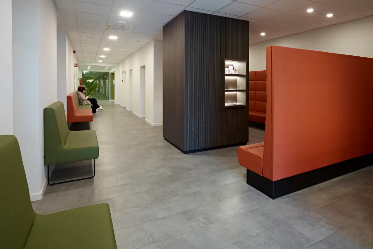 Voor de dienst gynaecologie van het OLV Ziekenhuis in Waregem realiseerde Dieto een interieur dat comfort en vertrouwen uitstraalt. De keuze voor zachte kleuren, ergonomisch meubilair en doordachte indeling creëert een ruimte waarin patiënten zich op hun gemak voelen en zorgverleners efficiënt kunnen werken. Het resultaat is een moderne, functionele én gastvrije omgeving die bijdraagt aan een positieve zorgervaring.