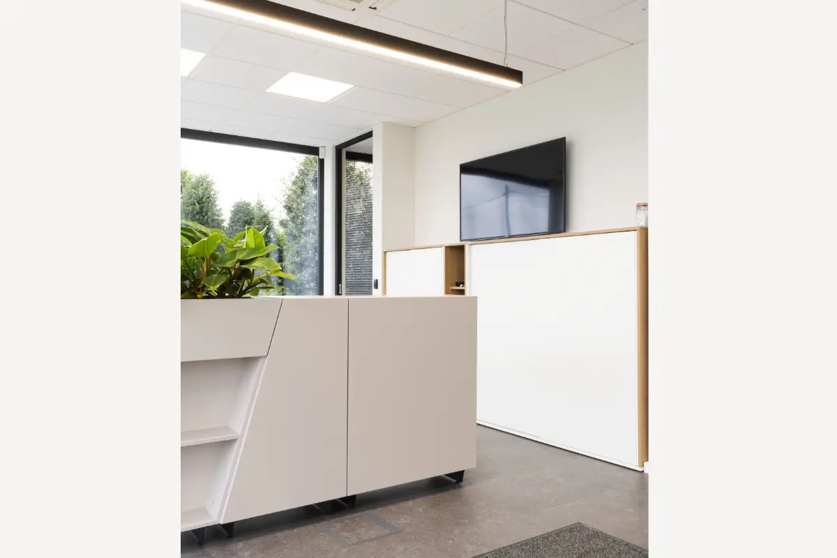 Voor Voeders Scherrens creëerde Dieto een moderne kantooromgeving die functionaliteit en comfort perfect combineert. Het nieuwe gebouw biedt ruime co-working plekken, een video conferencing room en diverse vergaderruimtes. Dankzij ergonomische bureaustoelen, zit-sta bureaus en slimme roomdividers is er voor elke medewerker een plek die productiviteit én welzijn ondersteunt. Het resultaat is een eigentijdse werkomgeving waar samenwerking, focus en inspiratie samenkomen.