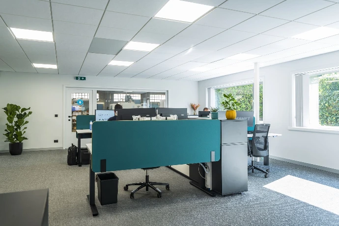 Het resultaat is een eigentijds kantoor dat efficiënt werken stimuleert, overzicht creëert en tegelijk een aangename werksfeer biedt voor medewerkers en bezoekers.