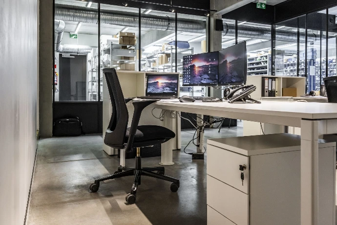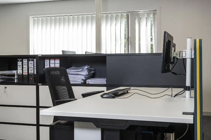 Functioneel kantoorinterieur met focus op efficiëntie en ergonomie