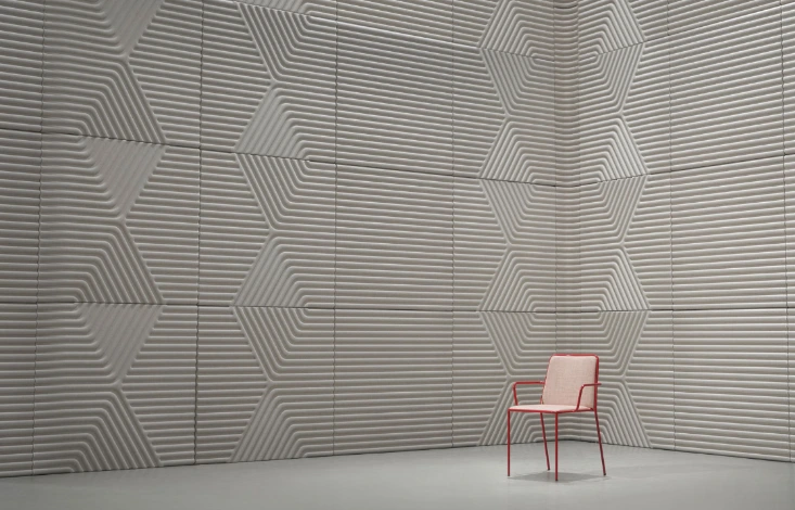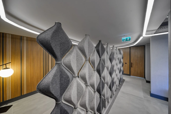 Feltouch werkt met een rijke kleurenrange en uitgesproken texturen, zodat akoestiek een volwaardig onderdeel van het interieurontwerp wordt. Bekroonde designs, zoals modulaire lichtcollecties en panelen met Red Dot en iF Design Awards, tonen dat esthetiek en techniek hier hand in hand gaan.