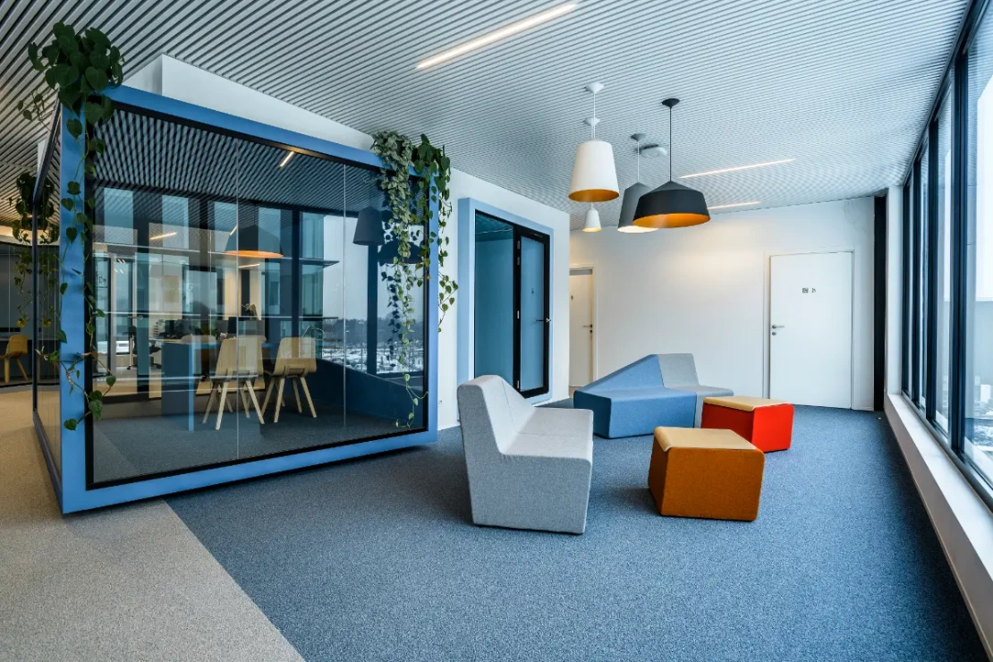 Geavanceerde akoestische oplossingen voor een serene en productieve werksfeer.